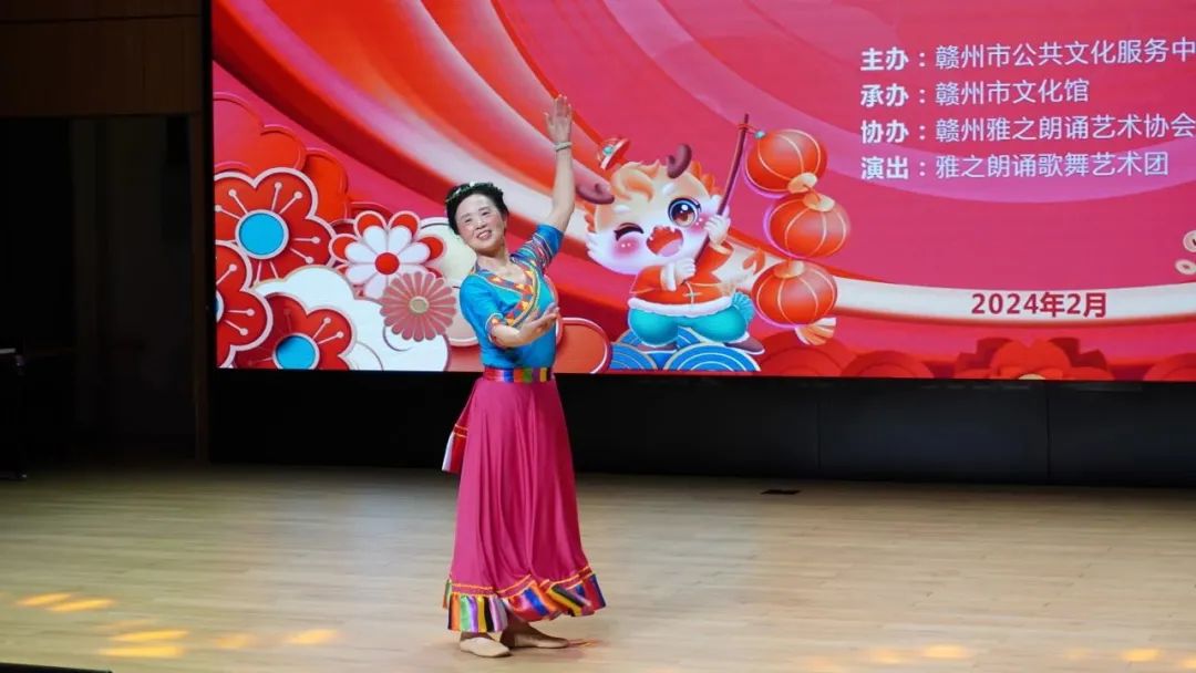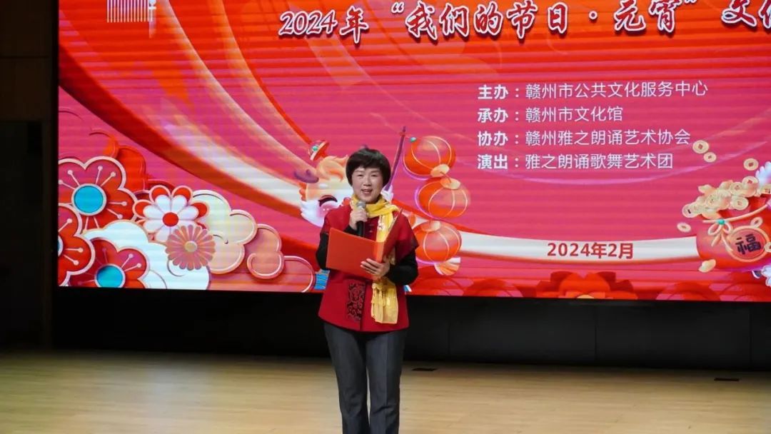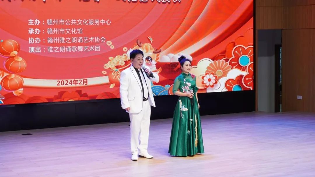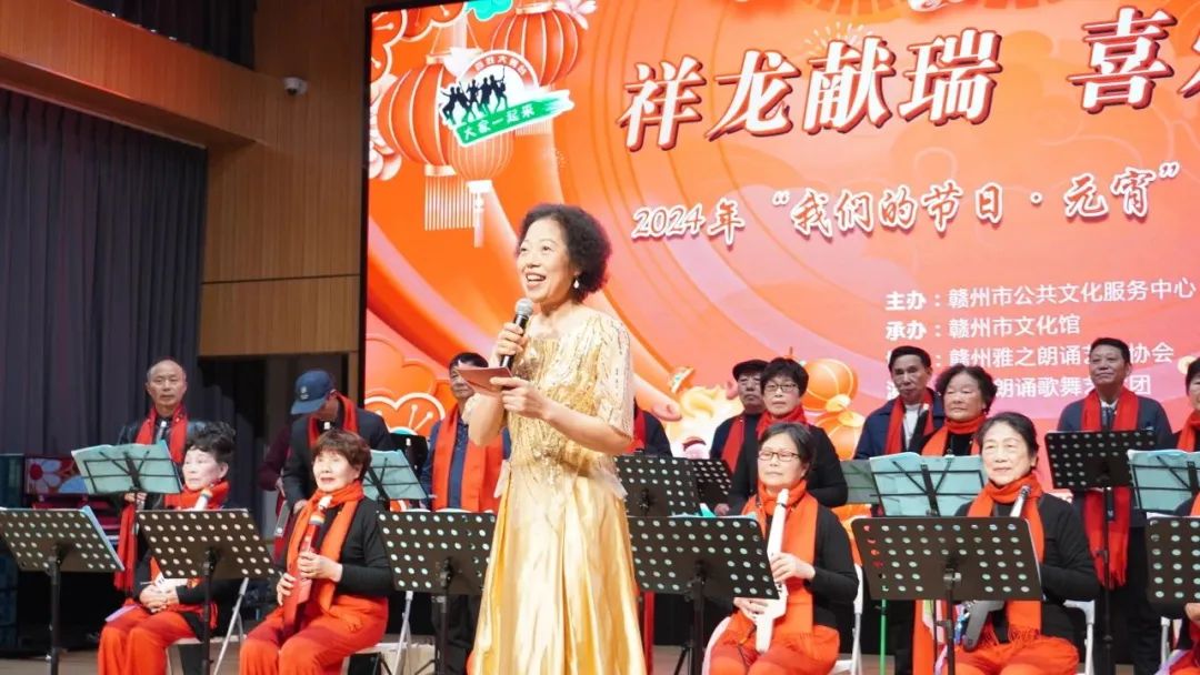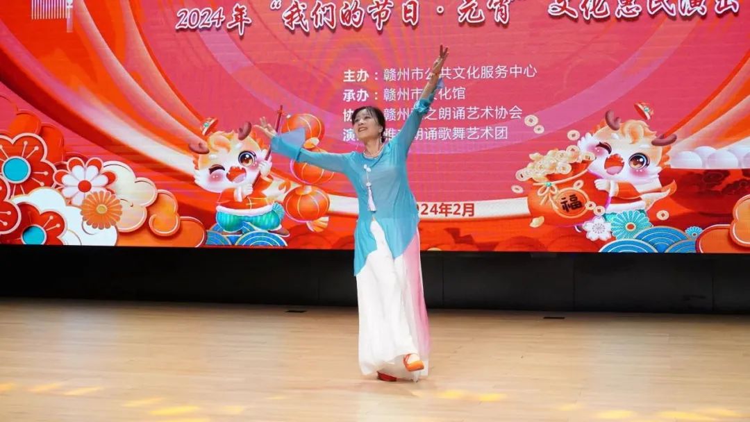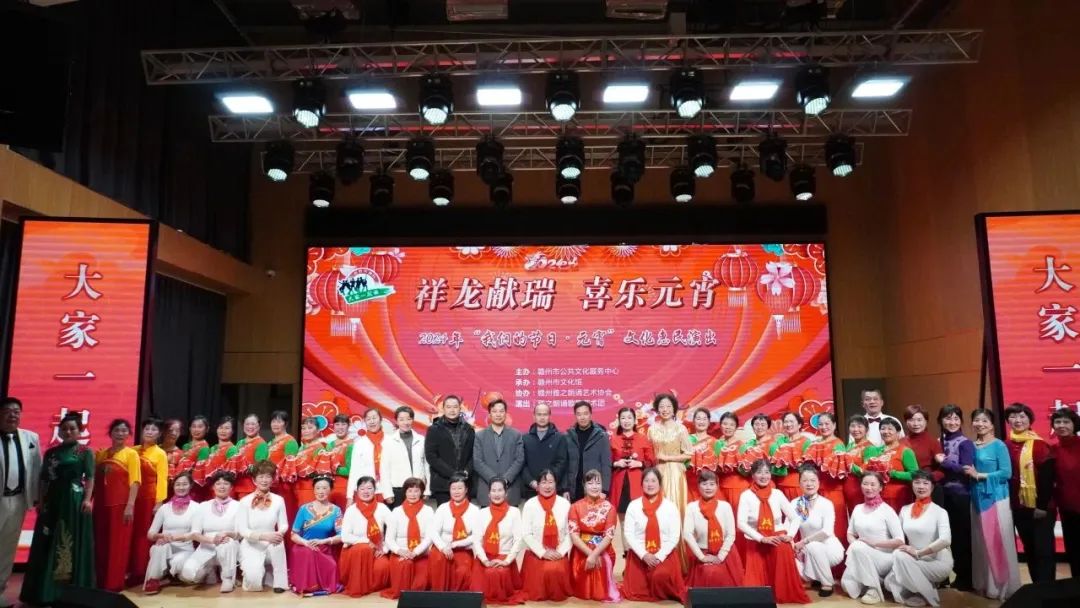 火树银花元夕夜,彩灯万盏熠霞流。为进一步丰富群众的精神文化生活,营造欢乐祥和的节日氛围,提升群众的幸福感与获得感,2月23日,由赣州市公共文化服务中心主办、赣州市文化馆承办、赣州雅之朗诵艺术协会协办,雅之朗诵歌舞艺术团演出的“祥龙献瑞 喜乐元宵”——我们的节日·元宵文化惠民演出在赣州市文化馆群星剧场成功举办,共有约300名群众参与本次活动。