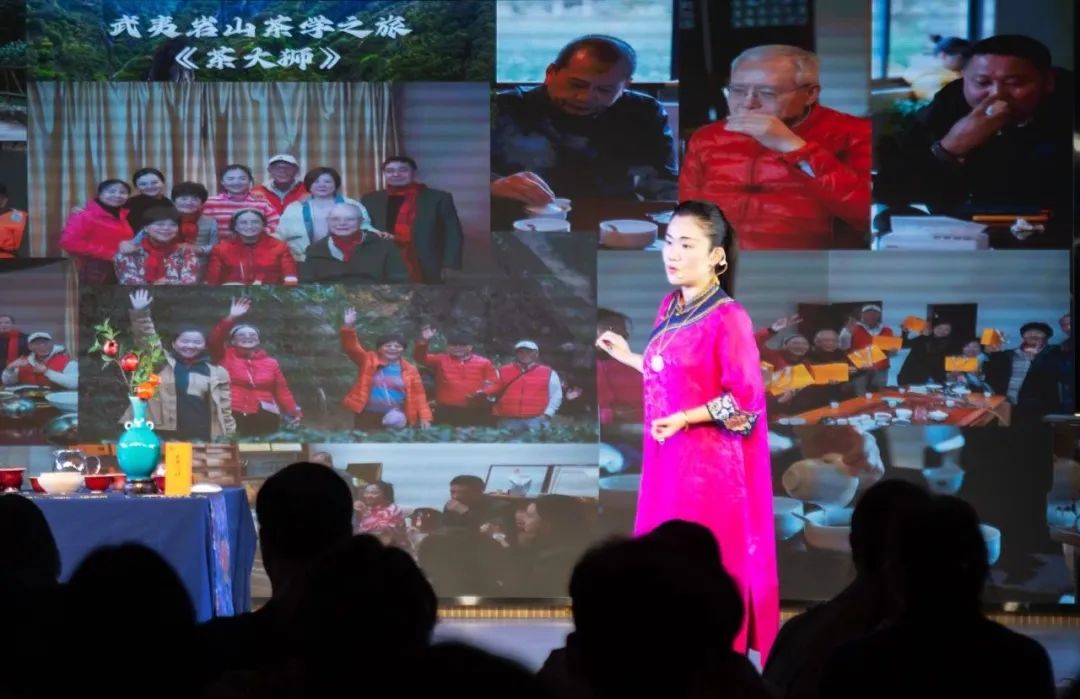 讲座在果子老师的茶道表演《相约紫云山》中圆满落幕。表演中果子老师以优雅流畅的动作展示了冲泡乌龙茶的全过程。从焚香、温杯、置茶到摇香、冲泡和分茶,每一个步骤都充满了仪式感。乌龙茶的香气随着表演的进行在讲座现场逐渐弥漫开来。