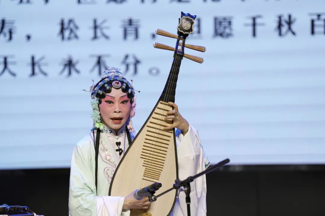 吕成芳老师通过生动的语言向大家介绍了昆曲的历史,用婉转的行腔、细腻的表演让大家感受到了非遗昆曲的魅力。很多人是第一次近距离欣赏昆剧艺术,而吕成芳老师的一招一式、一颦一笑都在告诉大家,昆曲原来那么美。吕成芳老师古琴、三弦、琵琶无一不通,不同器乐的表演和唱腔,受到了现场观众阵阵热烈的掌声。