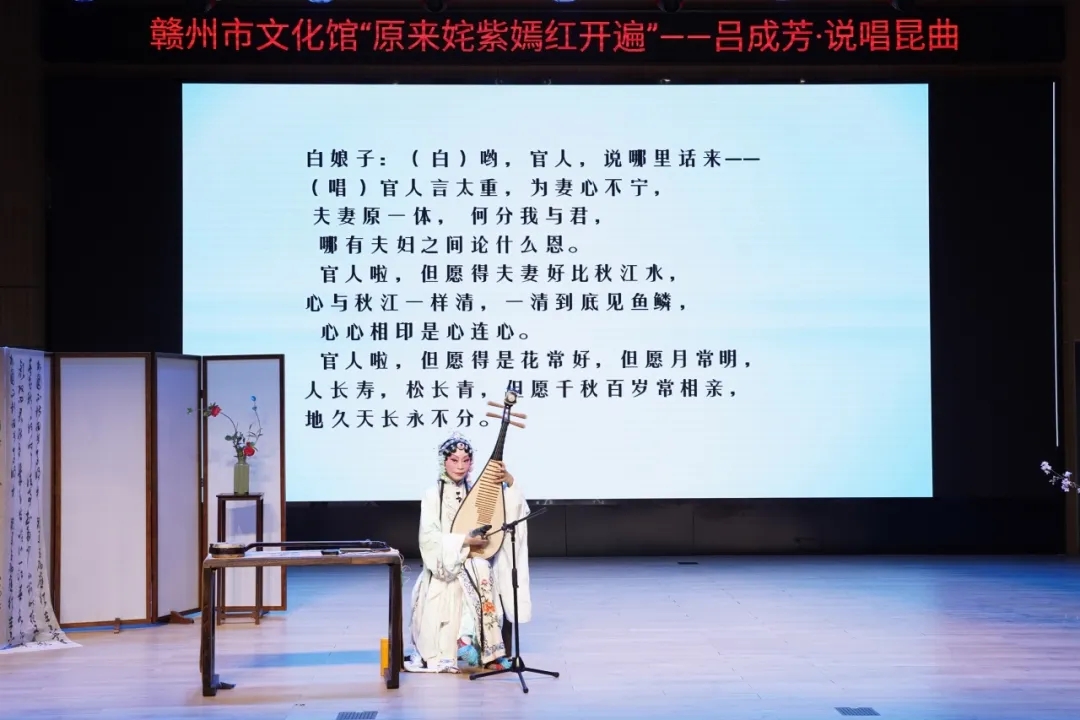 3月29日晚,由赣州市文化馆、赣州市文玩协会主办的“原来姹紫嫣红开遍”吕成芳·说唱昆曲在赣州市文化馆二楼群星剧场举行,本次活动吸引了160余人线上线下报名参与。