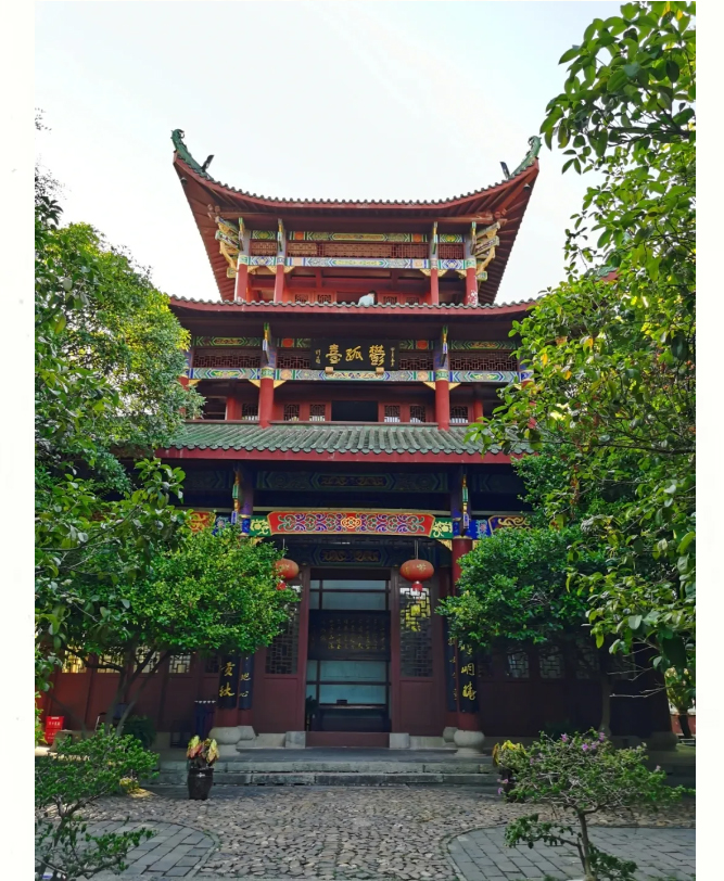 环游二层,远处鸟语花香,近处绿树成荫,高大的树木把整个二层都遮挡得严严实实,赣州城区在枝叶缝里若隐若现。