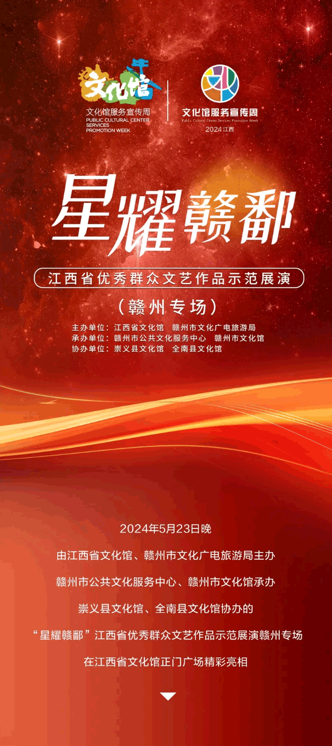 ※ 特别声明:本公众号仅用于赣州市文化馆公共文化服务及群众文化艺术普及,不用于任何商业用途。所转载文章及图片、视频、音频等版权均属原作者。如有侵权,请及时与本公众号联系。