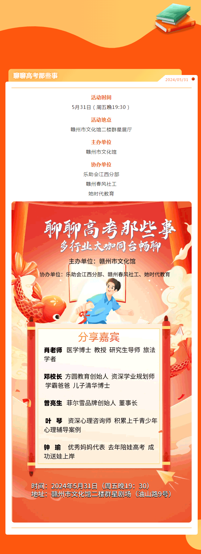 当前位置: 首页 > 文化动态 > 活动预告 | “助力高考 圆梦青春”多行业大咖同台畅聊高考