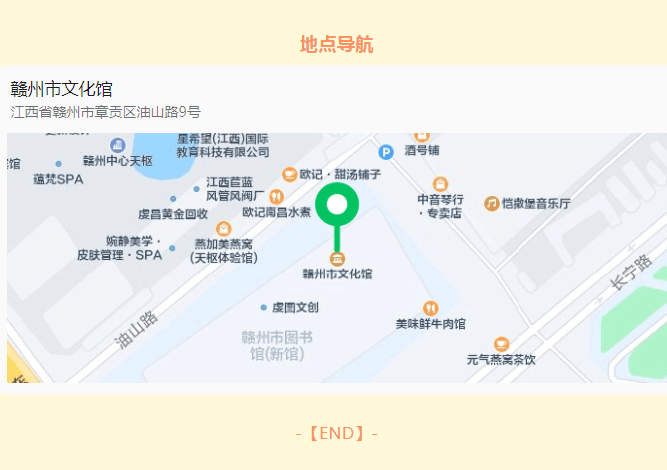 ※ 特别声明:本公众号仅用于赣州市文化馆公共文化服务及群众文化艺术普及,不用于任何商业用途。所转载文章及图片、视频、音频等版权均属原作者。如有侵权,请及时与本公众号联系。