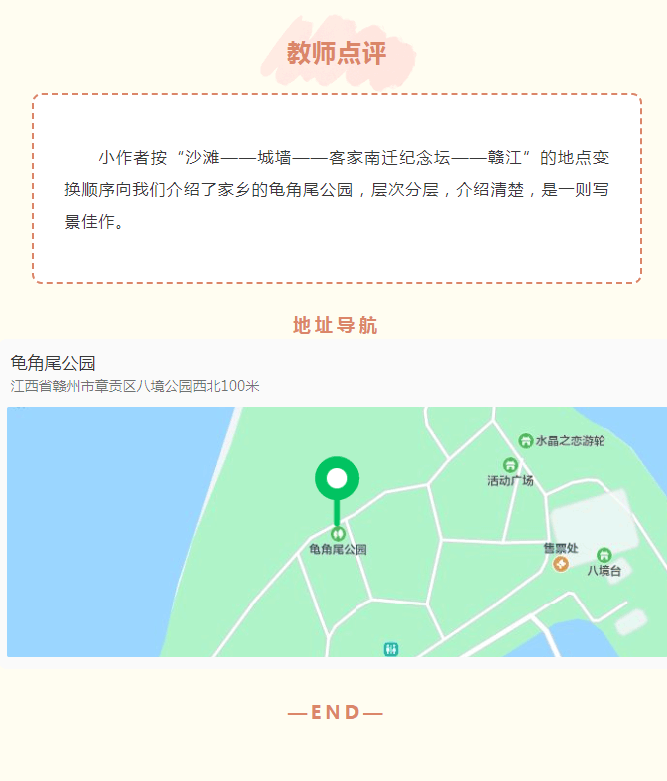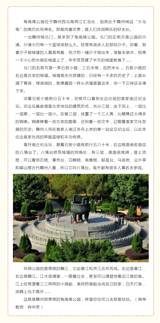 当前位置: 首页 > 文化动态 > 作文里的赣州:《龟角尾公园》