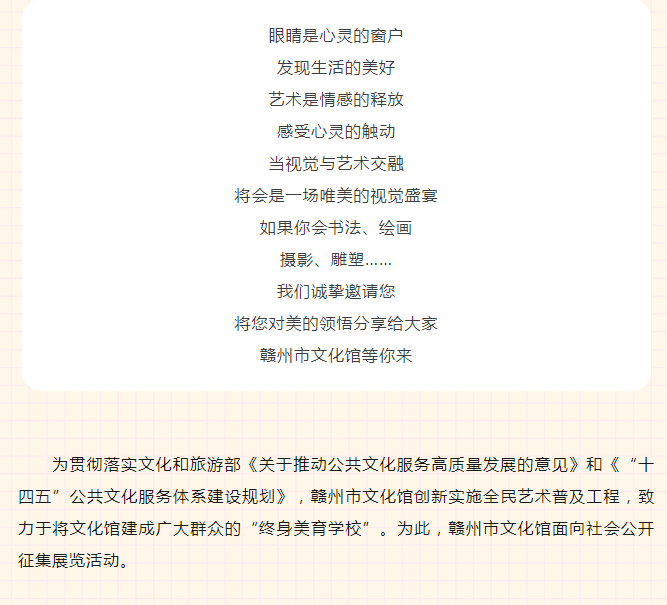 展览征集 |“人民的终身美育课堂”赣州市文化馆视觉艺术公益活动