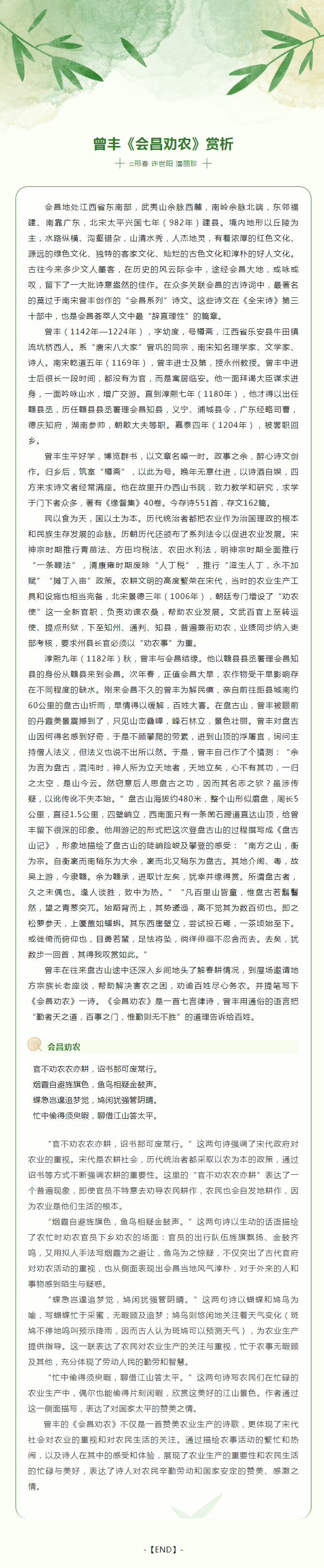 ※ 特别声明:本公众号仅用于赣州市文化馆公共文化服务及群众文化艺术普及,不用于任何商业用途。所转载文章及图片、视频、音频等版权均属原作者。如有侵权,请及时与本公众号联系