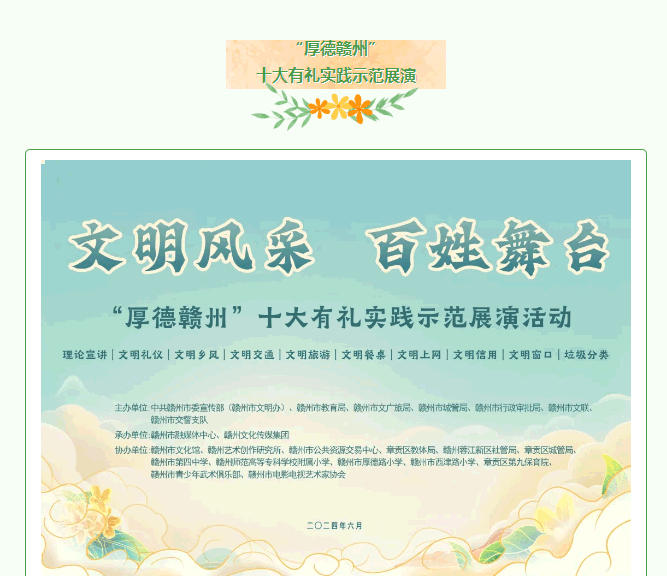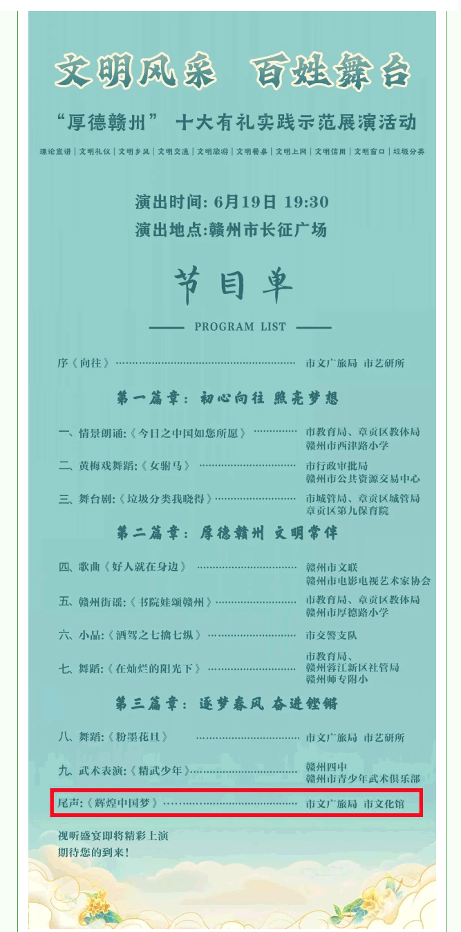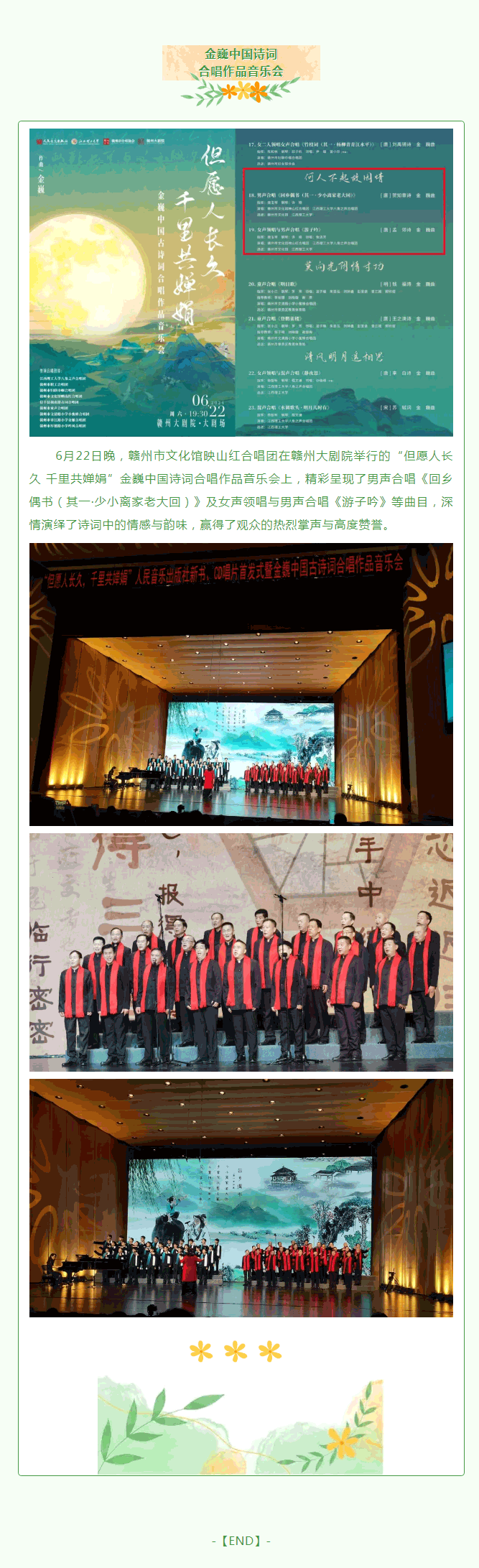 ※ 特别声明:本公众号仅用于赣州市文化馆公共文化服务及群众文化艺术普及,不用于任何商业用途。所转载文章及图片、视频、音频等版权均属原作者。如有侵权,请及时与本公众号联系。