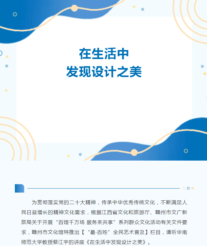 ※ 特别声明:本公众号仅用于赣州市文化馆公共文化服务及群众文化艺术普及,不用于任何商业用途。所转载文章及图片、视频、音频等版权均属原作者。如有侵权,请及时与本公众号联系。