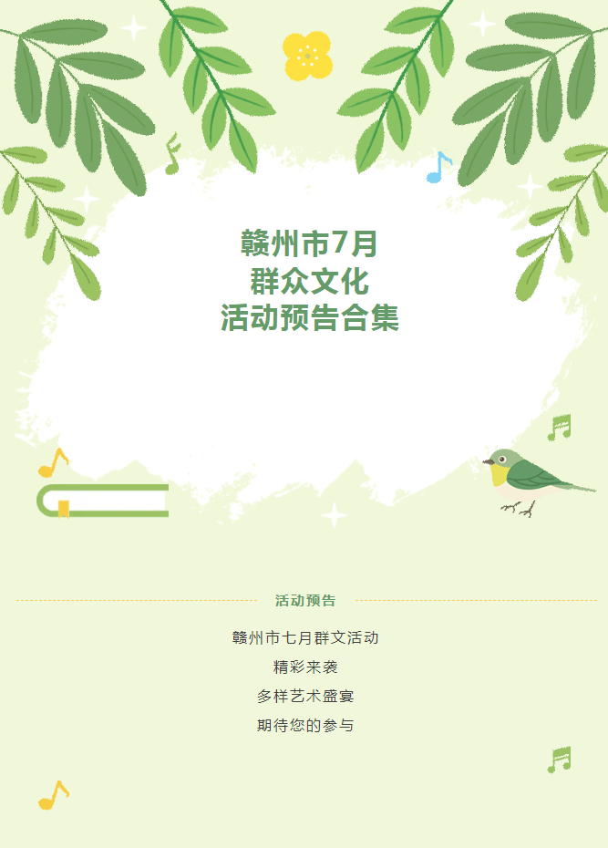 ※ 特别声明:本公众号仅用于赣州市文化馆公共文化服务及群众文化艺术普及,不用于任何商业用途。所转载文章及图片、视频、音频等版权均属原作者。如有侵权,请及时与本公众号联系。