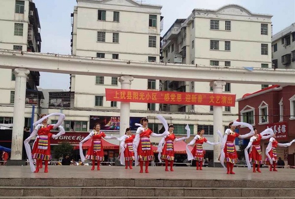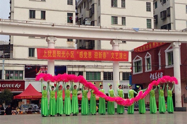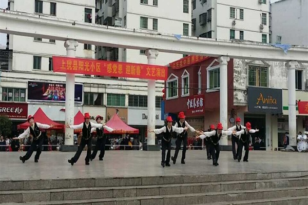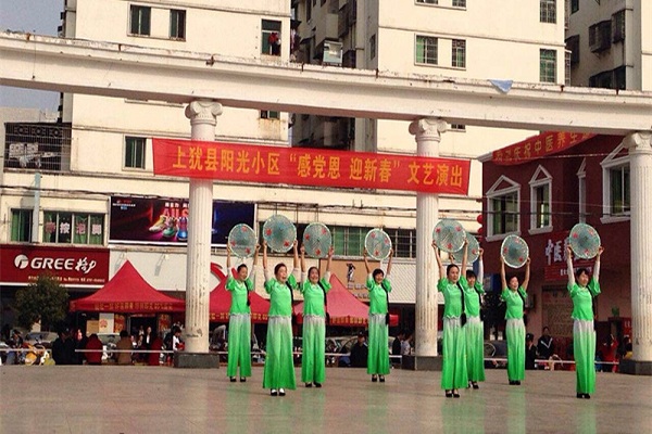 为歌颂中国共产党的伟大历程和丰功伟绩,抒发全县人民爱党爱国的情怀,进一步丰富春节期间群众精神文化活动,让基层广大群众在欢声笑语中渡过一个喜庆祥和的春节,2月17日下午,县文广局联合上犹县东山镇政府在县茗馨广场举办了《感党恩·迎新春》暨《永远热爱党·永远跟党走》贺新春文艺汇演。联欢会以“喜逢盛世迎新春,载歌载舞颂党恩”为主题,以饱满的热情、动人的舞姿为群众送上了一份浓浓的情意和新年的祝福,为百姓奉上一场丰富多彩的新春文化大餐。