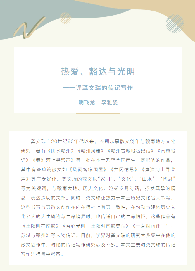 ※ 特别声明:本公众号仅用于赣州市文化馆公共文化服务及群众文化艺术普及,不用于任何商业用途。所转载文章及图片、视频、音频等版权均属原作者。如有侵权,请及时与本公众号联系。