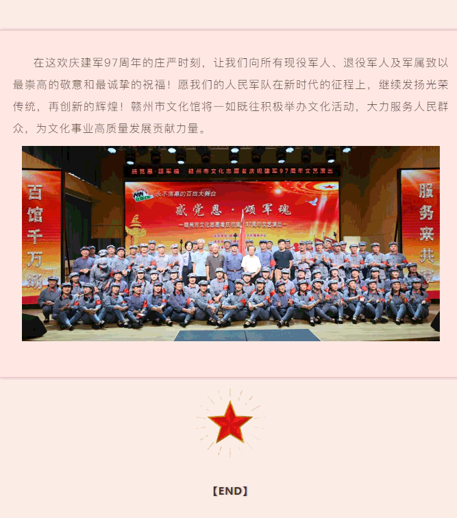 ※ 特别声明:本公众号仅用于赣州市文化馆公共文化服务及群众文化艺术普及,不用于任何商业用途。所转载文章及图片、视频、音频等版权均属原作者。如有侵权,请及时与本公众号联系。