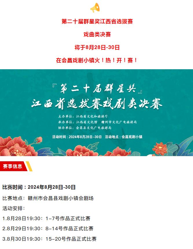 ※ 特别声明:本公众号仅用于赣州市文化馆公共文化服务及群众文化艺术普及,不用于任何商业用途。所转载文章及图片、视频、音频等版权均属原作者。如有侵权,请及时与本公众号联系。
