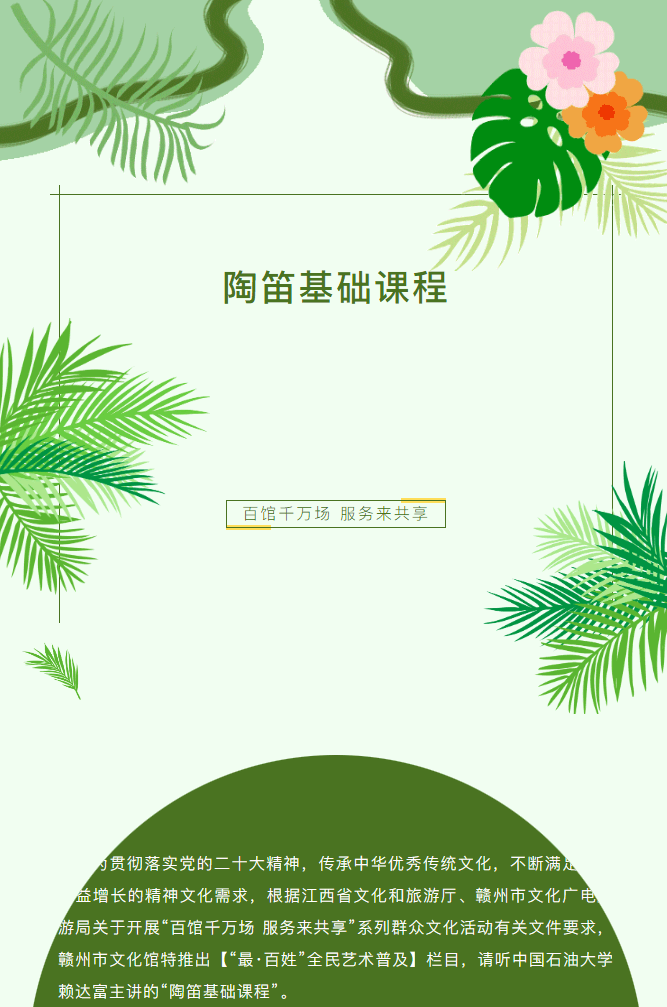 ※ 特别声明:本公众号仅用于赣州市文化馆公共文化服务及群众文化艺术普及,不用于任何商业用途。所转载文章及图片、视频、音频等版权均属原作者。如有侵权,请及时与本公众号联系。