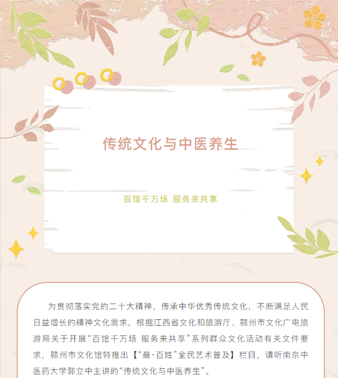 当前位置: 首页 > 文化动态 > 百馆千万场 服务来共享 | 传统文化与中医养生(七)