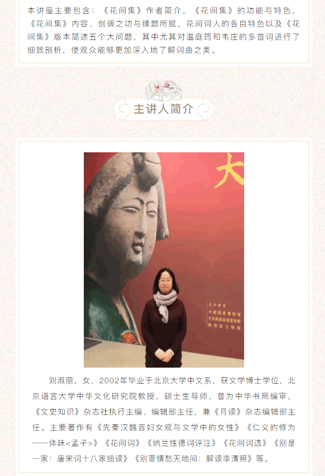 当前位置: 首页 > 文化动态 > 百馆千万场 服务来共享 | 情真而调逸 思深而言婉——《花间集》导读(五)