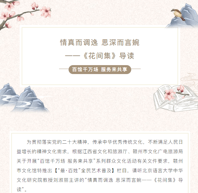 百馆千万场 服务来共享 | 情真而调逸 思深而言婉——《花间集》导读(五)