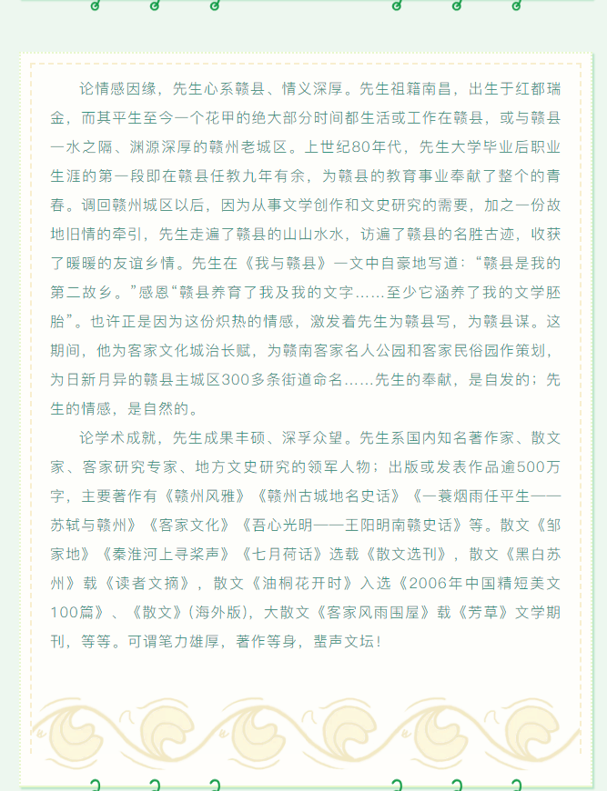 ※ 特别声明:本公众号仅用于赣州市文化馆公共文化服务及群众文化艺术普及,不用于任何商业用途。所转载文章及图片、视频、音频等版权均属原作者。如有侵权,请及时与本公众号联系。