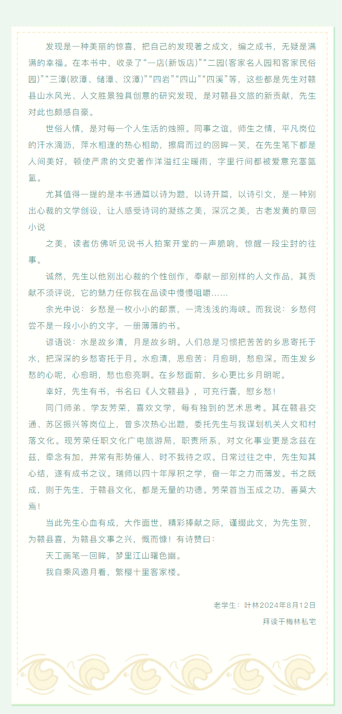 群文阅读 | 叶林:此心更比乡月明——《人文赣县》序