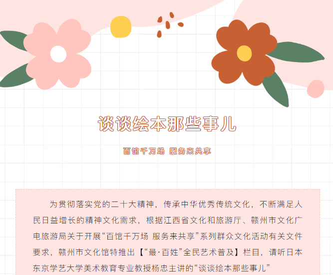 ※ 特别声明:本公众号仅用于赣州市文化馆公共文化服务及群众文化艺术普及,不用于任何商业用途。所转载文章及图片、视频、音频等版权均属原作者。如有侵权,请及时与本公众号联系。