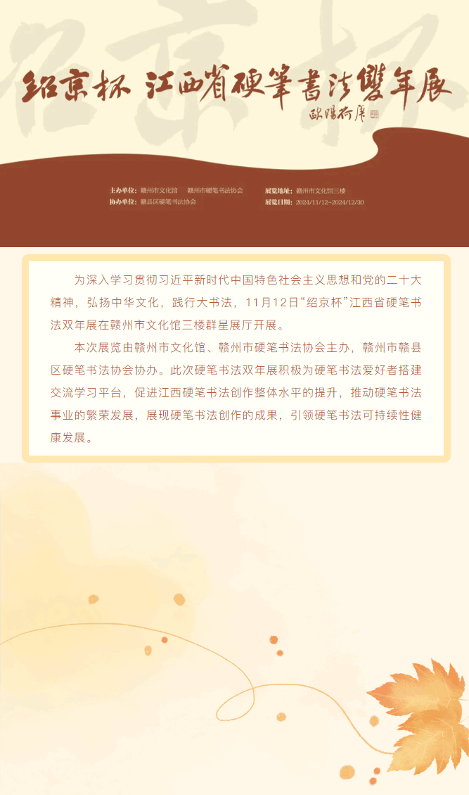 当前位置: 首页 > 文化动态 > 展讯|“绍京杯”江西省硬笔书法双年展开展