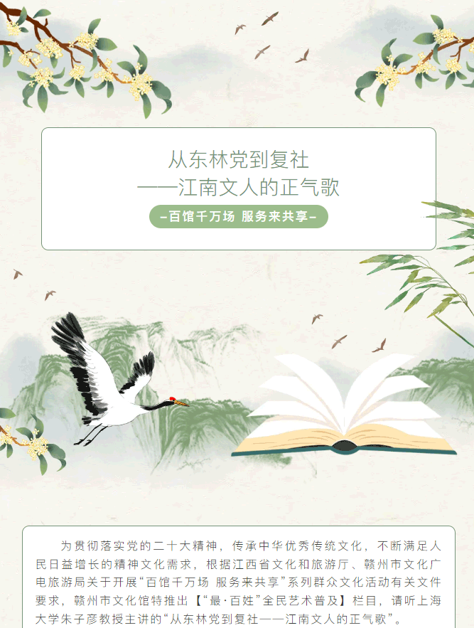 当前位置: 首页 > 文化动态 > 百馆千万场 服务来共享 | 从东林党到复社——江南文人的正气歌(六)