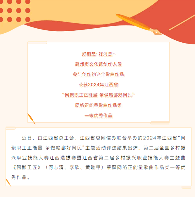 ※ 特别声明:本公众号仅用于赣州市文化馆公共文化服务及群众文化艺术普及,不用于任何商业用途。所转载文章及图片、视频、音频等版权均属原作者。如有侵权,请及时与本公众号联系。
