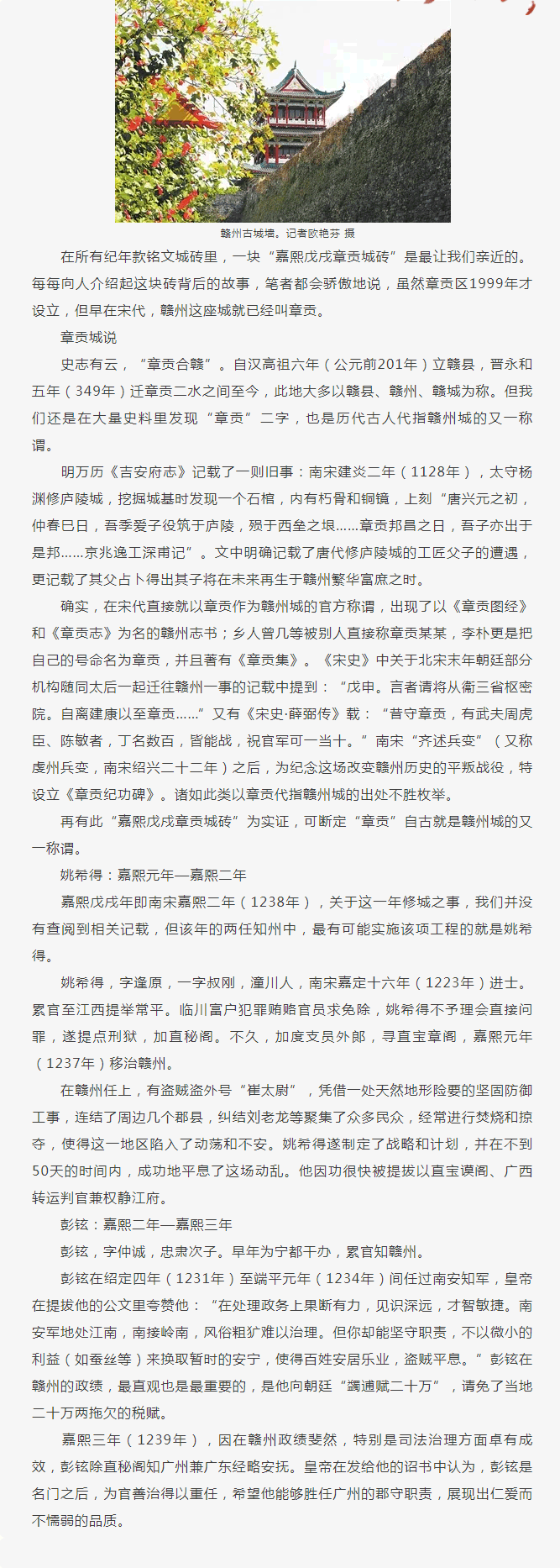 宋韵迹忆 | 一块“嘉熙砖”证明赣州城在宋代就叫章贡