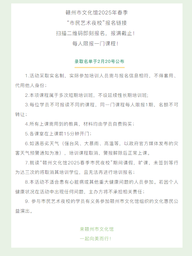 ※ 特别声明:本公众号仅用于赣州市文化馆公共文化服务及群众文化艺术普及,不用于任何商业用途。所转载文章及图片、视频、音频等版权均属原作者。如有侵权,请及时与本公众号联系。