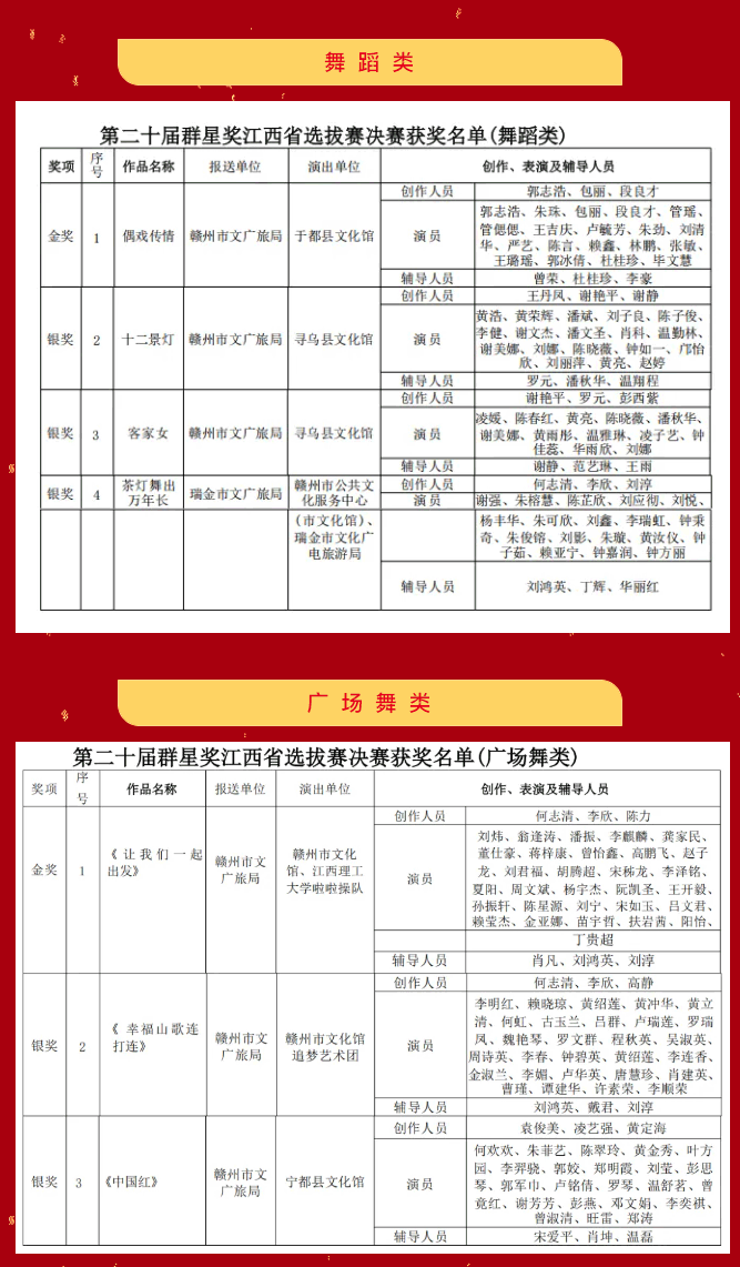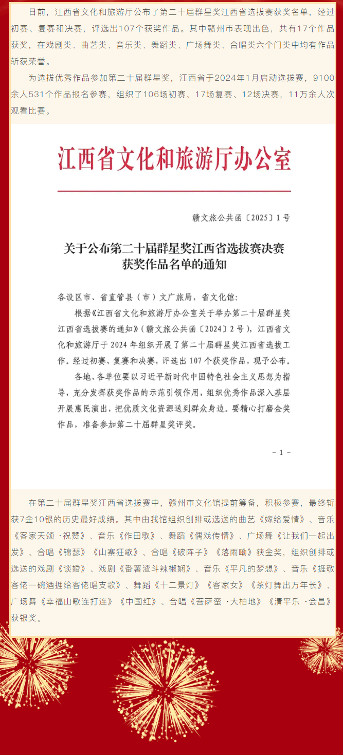 7金10银!赣州市在第二十届群星奖江西选拔赛中喜获丰收!
