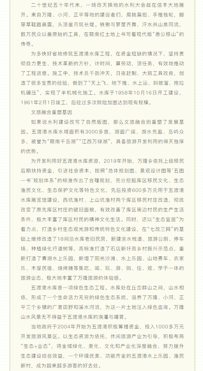 当前位置: 首页 > 文化动态 > 行走赣南 |碧水丹心促文旅融合——信丰县五渡港水库的绿色蝶变之路