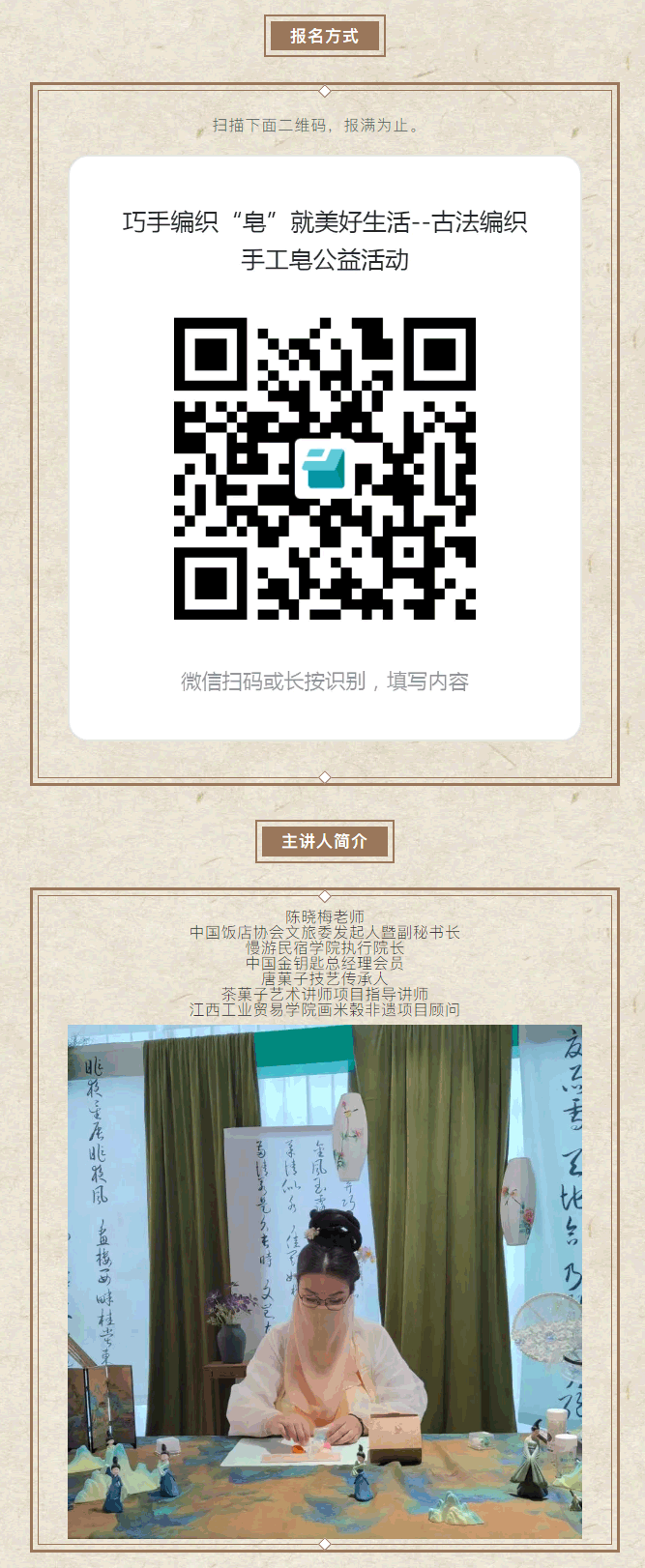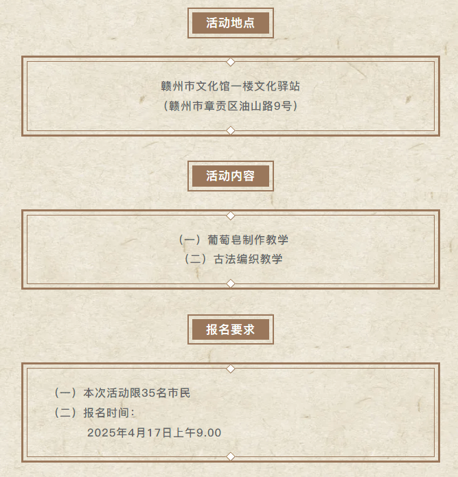 当前位置: 首页 > 文化动态 > 活动报名 | 古法编织手工皂公益活动