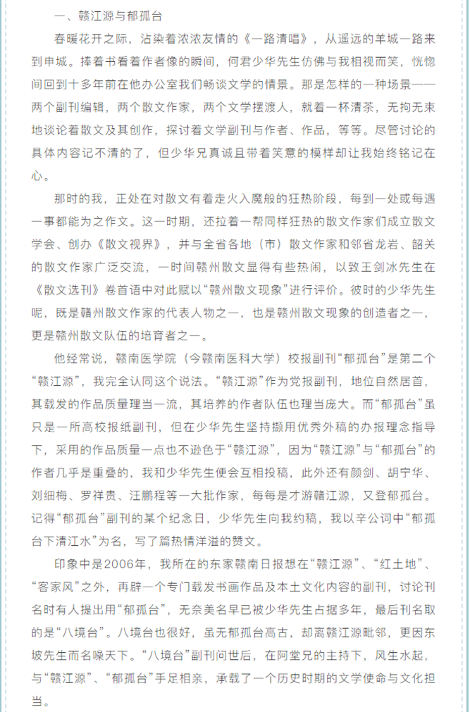 当前位置: 首页 > 文化动态 > 群文者说 | 岁月的清吟浅唱——读何少华先生《一路清唱》有感