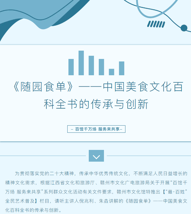 当前位置: 首页 > 文化动态 > 百馆千万场 服务来共享 | 《随园食单》——中国美食文化百科全书的传承与创新(二)