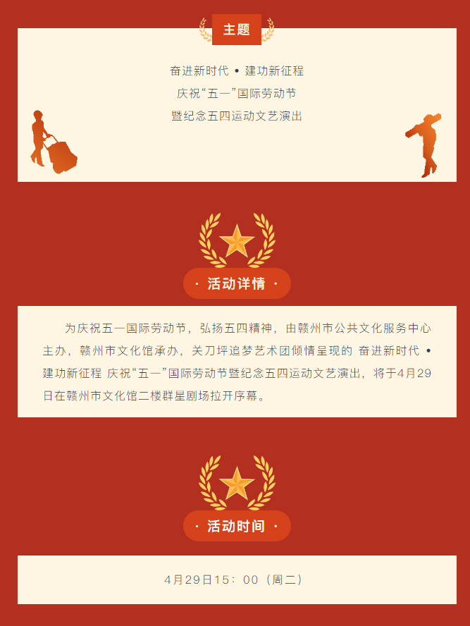 活动预告 | 奋进新时代 • 建功新征程 庆祝“五一”国际劳动节暨纪念五四运动文艺演出预告