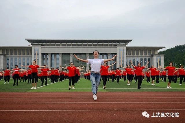 上犹县文化馆组织全县各晨练点、老年大学、文艺团体的广场舞爱好者三百余人齐聚广场,在指导团队的带领下,用最饱满的热情齐跳《我和我的祖国》广场舞,展现了在中国共产党的领导下,上犹广大群众昂扬向上的精神面貌和阔步走进新时代的坚定信心。
