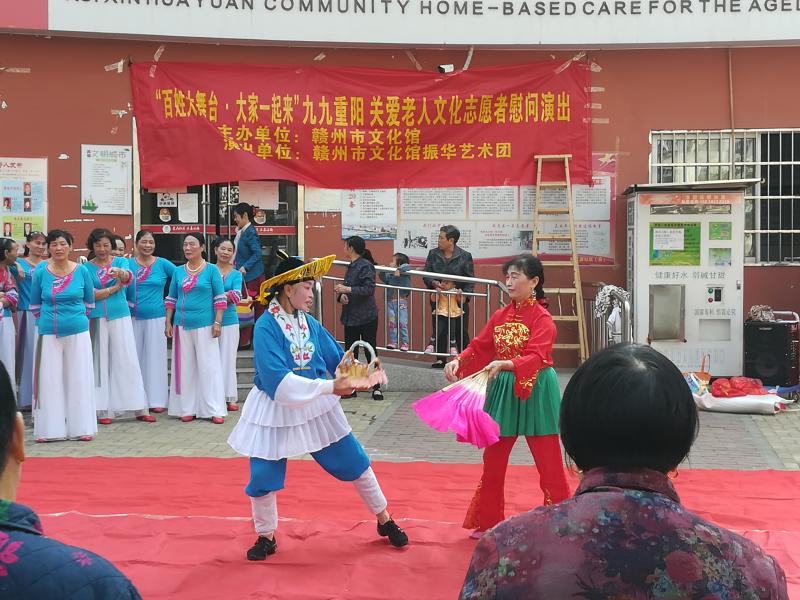 振华艺术团志愿者在水南镇赣江源社区瑞心花园居家养老社区举行九九重阳关爱老年人慰问