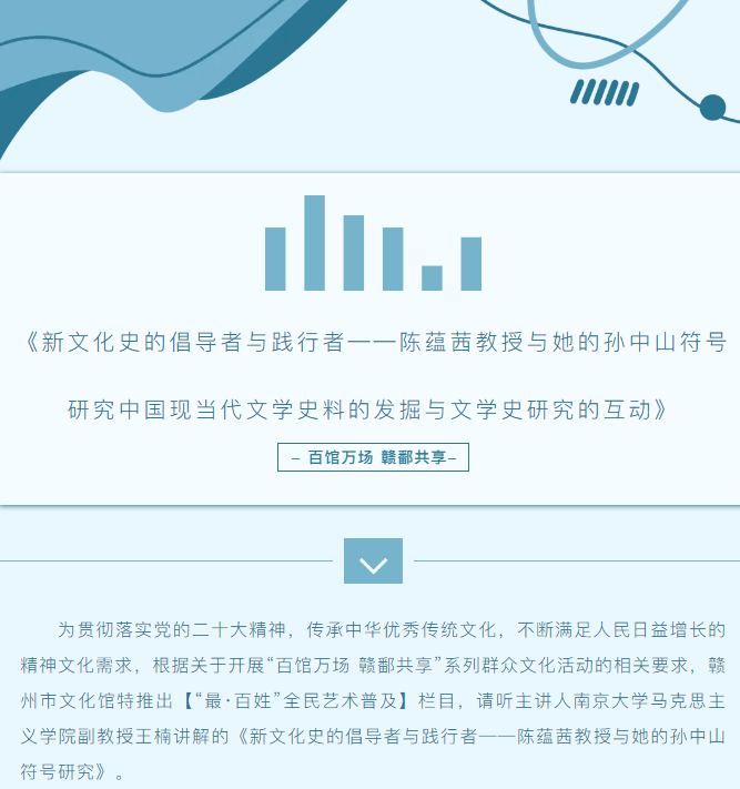 ※ 特别声明:本公众号仅用于赣州市文化馆公共文化服务及群众文化艺术普及,不用于任何商业用途。所转载文章及图片、视频、音频等版权均属原作者。如有侵权,请及时与本公众号联系。