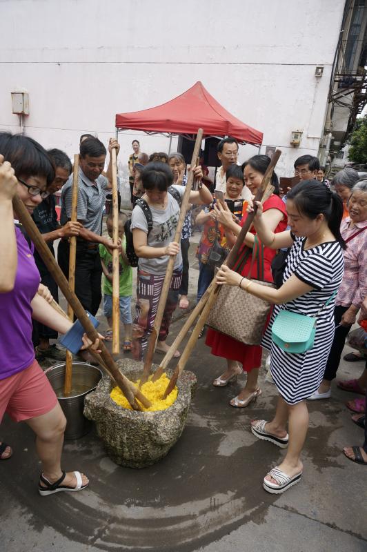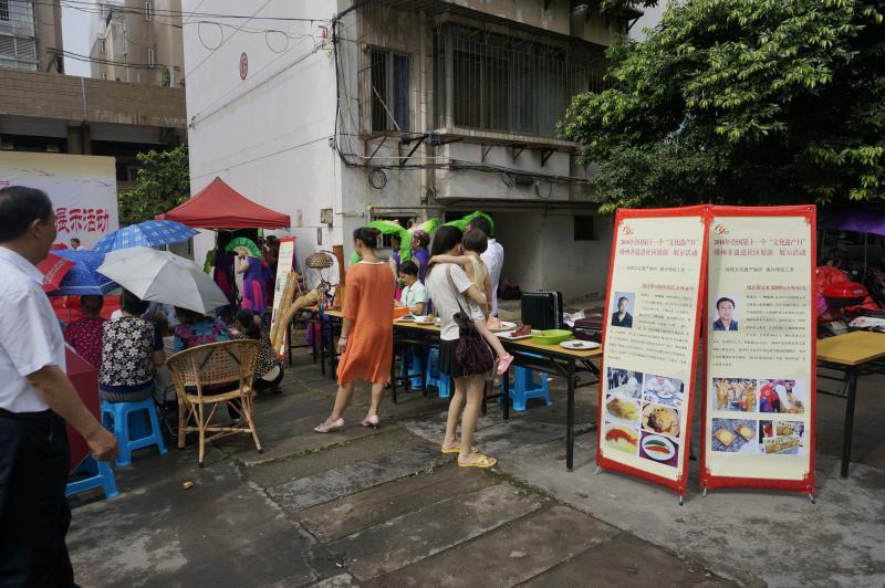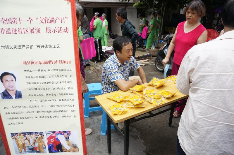 联系电话82102832016年6月12日是全国第十一个“文化非遗日”,又值我国传统节日端午节期间。七一九社区的居民们在尝粽子、插艾草、赛龙舟的气氛中,又有幸欣赏到了由赣州市文化广电新闻出版局主办,赣州市群众艺术馆承办的专场文艺演出和非遗项目展览,并现场进行打黄元米棵、竹雕、食贡等传统技艺表演。社区广场热闹非凡,居民们摩肩接踵,兴味盎然,受到了一次实实在在的传统文化教育。此次“文化非遗日”的主题是“加强文化遗产保护 振兴传统工艺”。