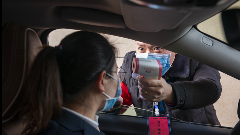 对小区回家人员测量体温 邹琴摄于石城都市花园