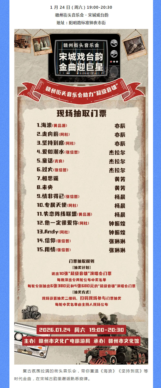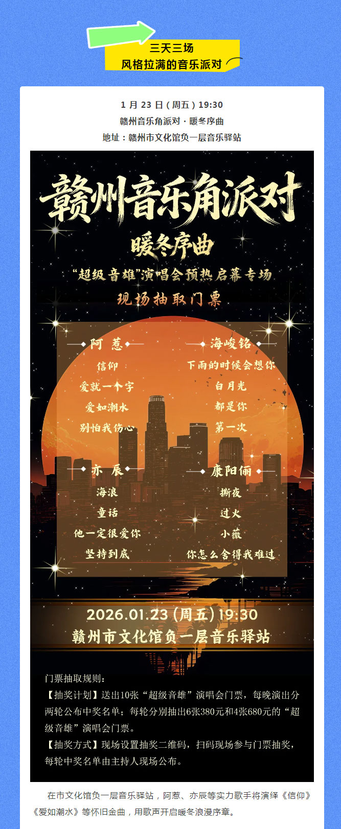 当前位置: 首页 > 地方特色库 > 赣文轻骑兵 | “超级音雄” 演唱会门票免费抽!连续 3 天!赣州音乐狂欢来袭
