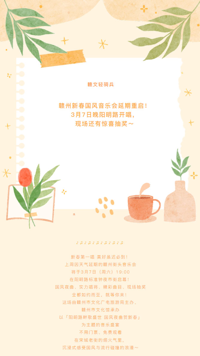 赣文轻骑兵|赣州新春国风音乐会延期重启!3月7日晚阳明路开唱,现场还有惊喜抽奖~