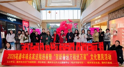 2026年1月31日,赣州市文化馆2026笔墨年味名家送福迎春暨“贺新春送万福进万家”文化惠民活动在赣州万象城顺利开展。六位知名书法家与非遗传承人现场献艺,开展写春联、赏剪纸、拓版画系列活动,市民沉浸式体验传统年俗,在笔墨纸韵间感受地道新春氛围,把满满福气与文化…