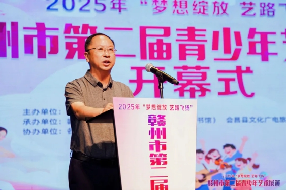 8月20日,2025年“梦想绽放 艺路飞扬”赣州市第二届青少年艺术展演在会昌戏剧小镇开幕。赣州市文化广电旅游局二级调研员张伟宣布开幕。县委常委、宣传部部长卢杜林出席并致辞。