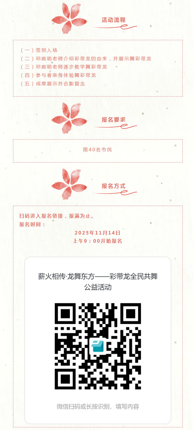 活动预告 | 薪火相传 · 龙舞东方——彩带龙全民共舞公益活动报名!
