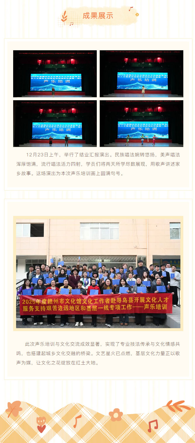 赣州市文化馆文化工作者赴寻乌县开展文化人才服务支持艰苦边远地区和基层一线专项工作声乐培训圆满结束!