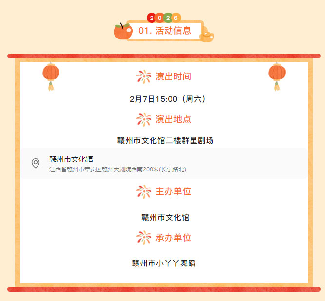 ※ 特别声明:本公众号仅用于赣州市文化馆公共文化服务及群众文化艺术普及,不用于任何商业用途。所转载文章及图片、视频、音频等版权均属原作者。如有侵权,请及时与本公众号联系。