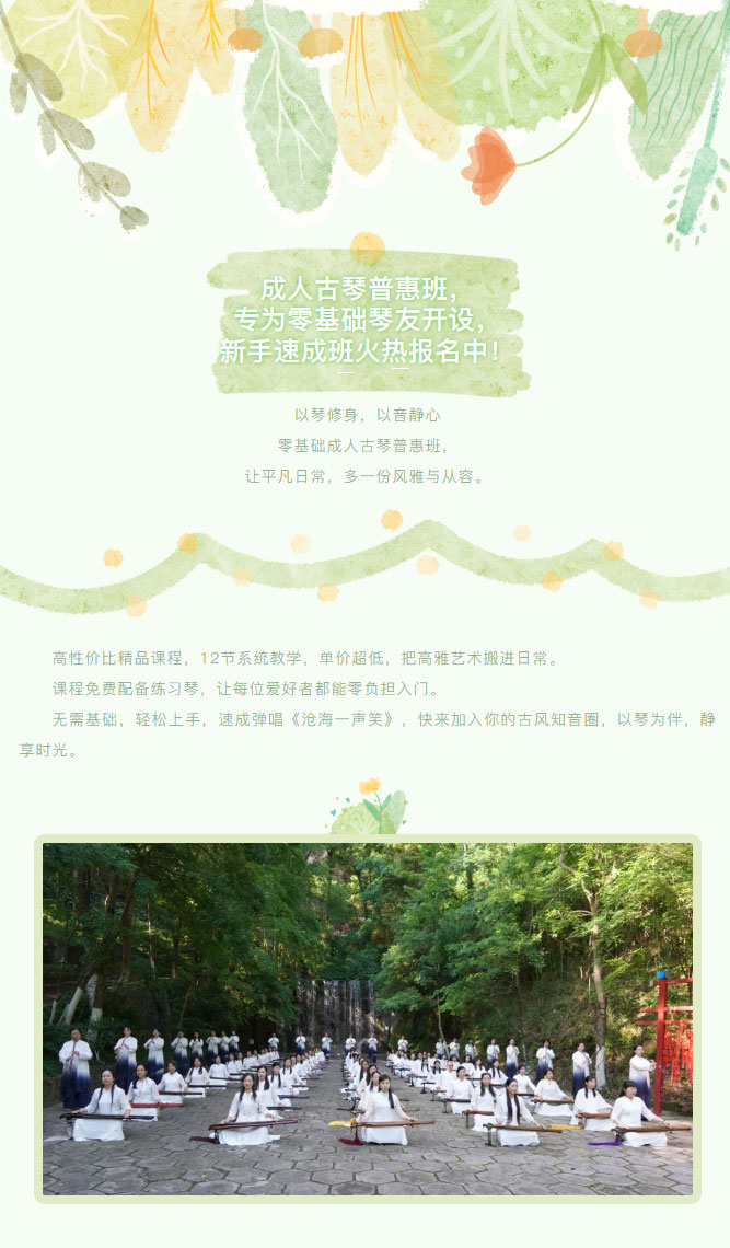 成人古琴普惠班,专为零基础琴友开设,新手速成班火热报名中!