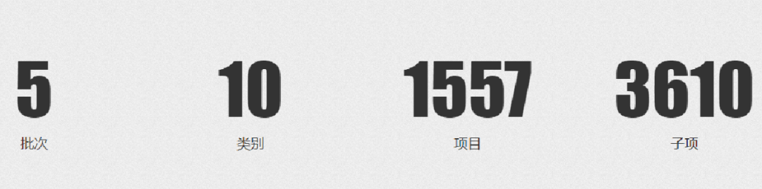 国务院先后于2006年、2008年、2011年、2014年和2021公布了五批国家级项目名录,共计1557个国家级非物质文化遗产代表性项目(以下简称“国家级项目”),按照申报地区或单位进行逐一统计,共计3610个子项。